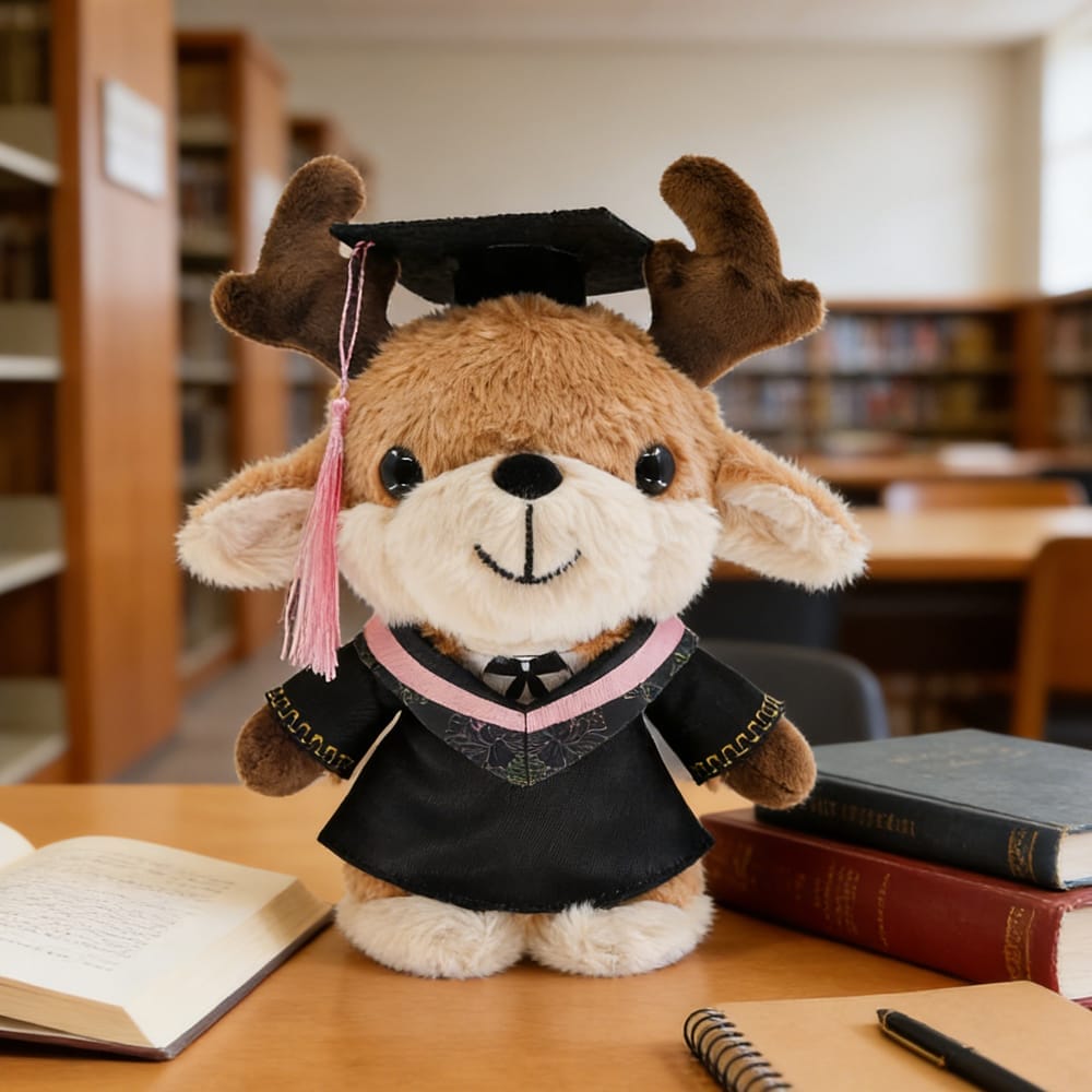 A custom graduation gown deer plush isn’t just for display. It’s perfect for graduation photos—hold it in your hand while posing with your diploma, or set it on the library desk for a study-themed shot. It also makes a great centerpiece at graduation parties, or a thoughtful gift for a roommate or classmate. After the ceremony, it becomes a cozy reminder of your hard work. Place it on your bed or desk, and every time you see it, you’ll smile at the memories of your big day.